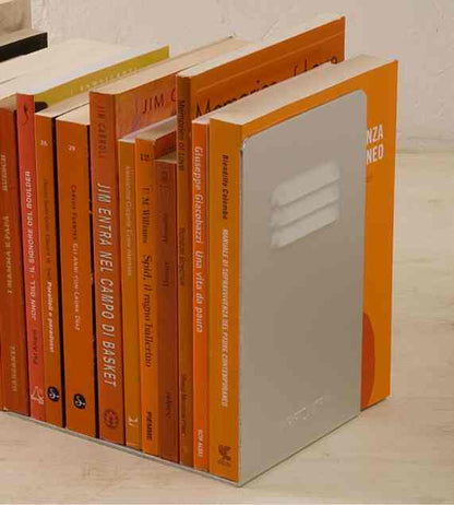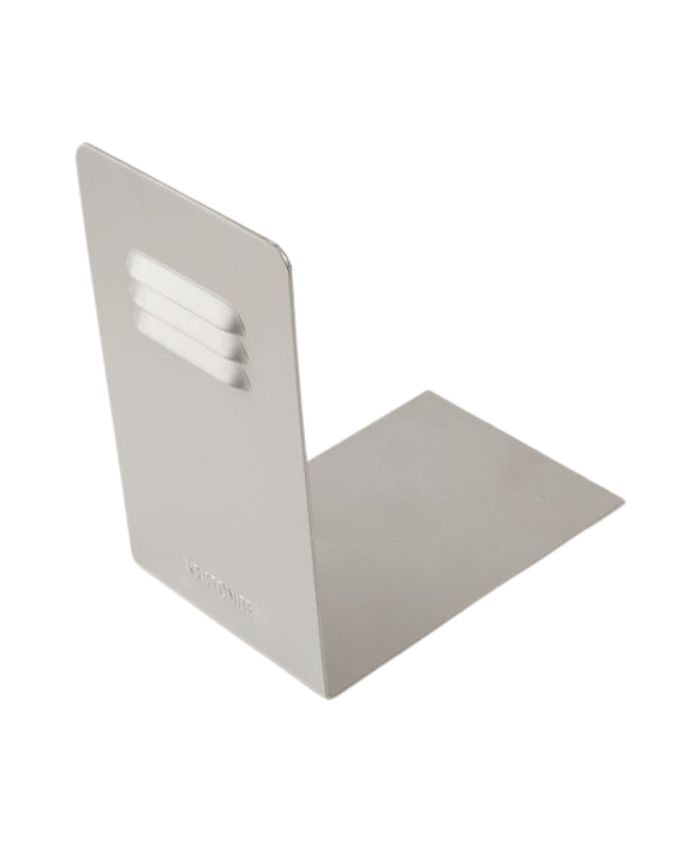 Reggilibri in alluminio anodizzato di Kriptonite, caratterizzato da un design semplice e altamente funzionale. Un accessorio ideale per l'ufficio o per qualsiasi libreria.