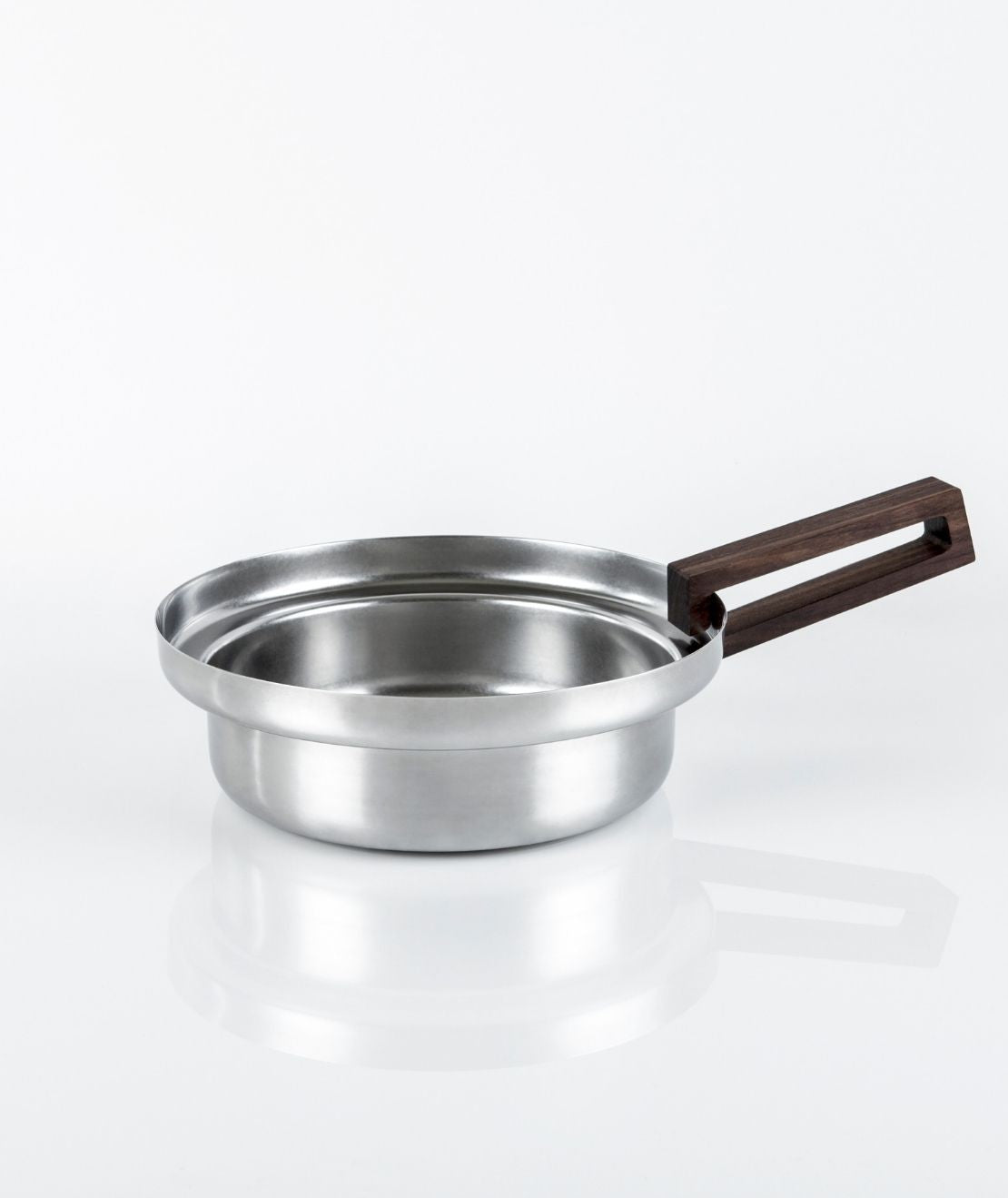 Il pratico manico/pinza, in legno di noce, può essere utilizzato per le pentole e padelle dell'intera collezione ed è acquistabile separatamente.