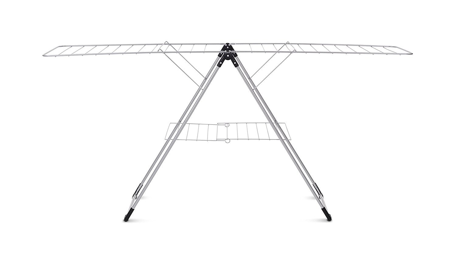 T-model di Brabantia è dotato di piedini anti-graffio e bracci regolabili in altezza, adatto anche per capi lunghi. Quando è chiuso è spesso meno di 6 centimetri ed è facile da riporre, mentre quando si aprono le ali offre ben 20 metri per stendere. T-model è disponibile in quattro colori, è molto robusto e durevole ed è facile da spostare anche quando è carico con il blocco per trasporto.