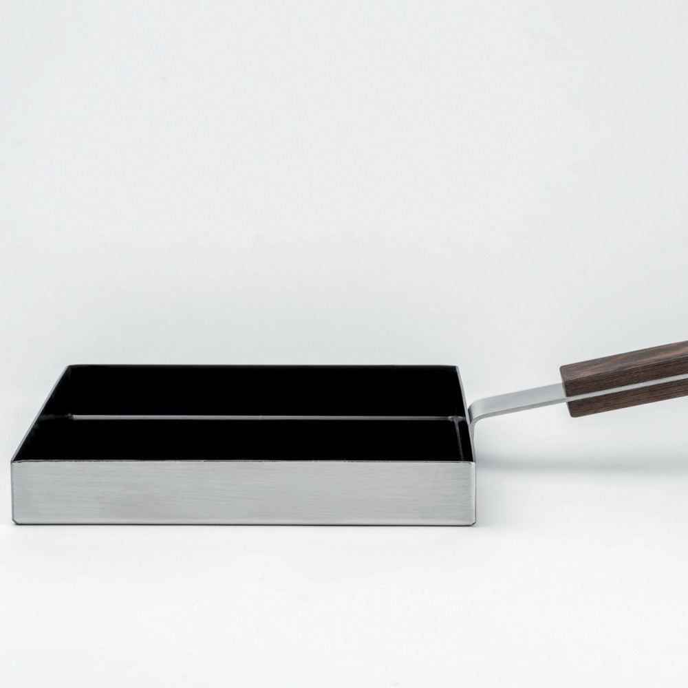 La forma è ispirata al lontano Giappone e alle tradizionali Tamagoyaki, padelle quadrate utilizzate per preparare le classiche frittate di uova e bento. L'attenzione di KnIndustrie per il design è sempre accompagnata dall'eccellente qualità dei materiali: “The Omelette” è realizzata in acciaio con rivestimento antiaderente e presenta un'impugnatura in legno wengé. Lo spessore è progettato in modo che il calore venga distribuito uniformemente, proprio come avviene in una padella rotonda.