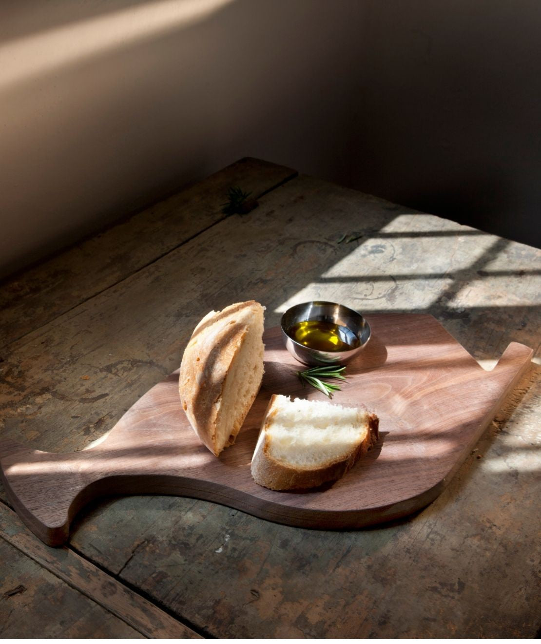 Il pesciolino azzurro è un tagliere in legno di noce canaletto adatto sia per uso alimentare che decorativo. Come tagliere e come piatto da portata è utilissimo ed è anche sorprendente da appendere. Che effetto!