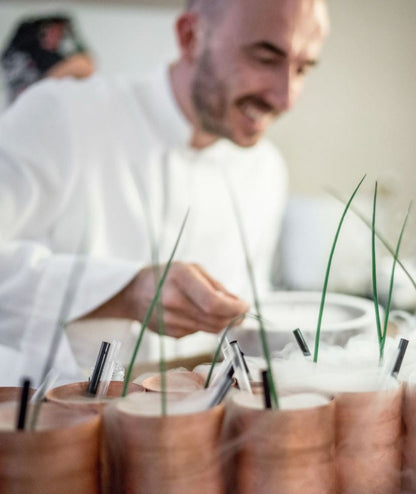 In questa collezione spicca, però, Mule, ispirato a un famoso long drink nato in California nel 1941. Secondo la leggenda, la bevanda è frutto dell'incontro tra un importatore di vodka, il proprietario di uno dei locali più trendy di Hollywood e una giovane russa, arrivata in America con duemila tazze di rame.