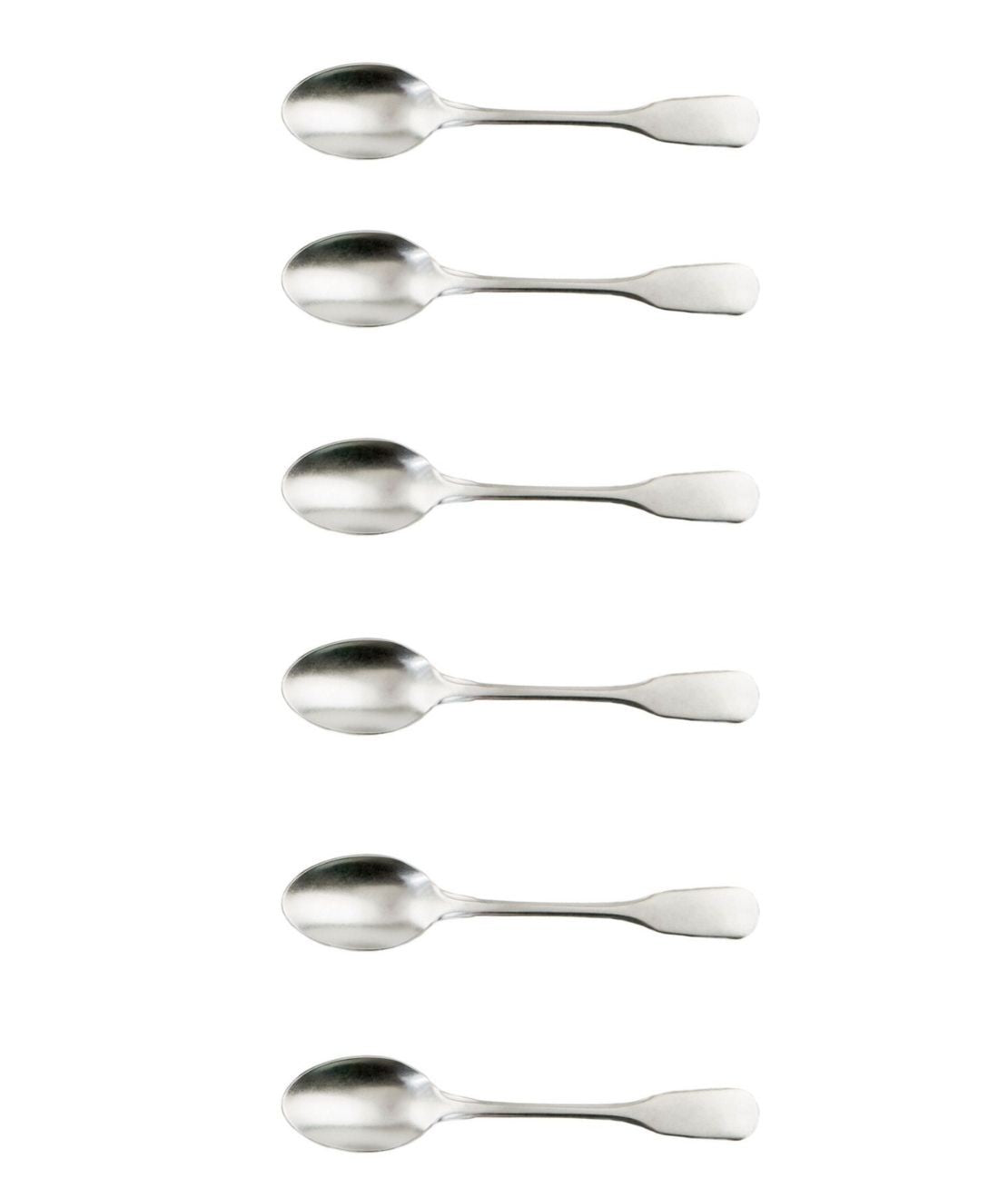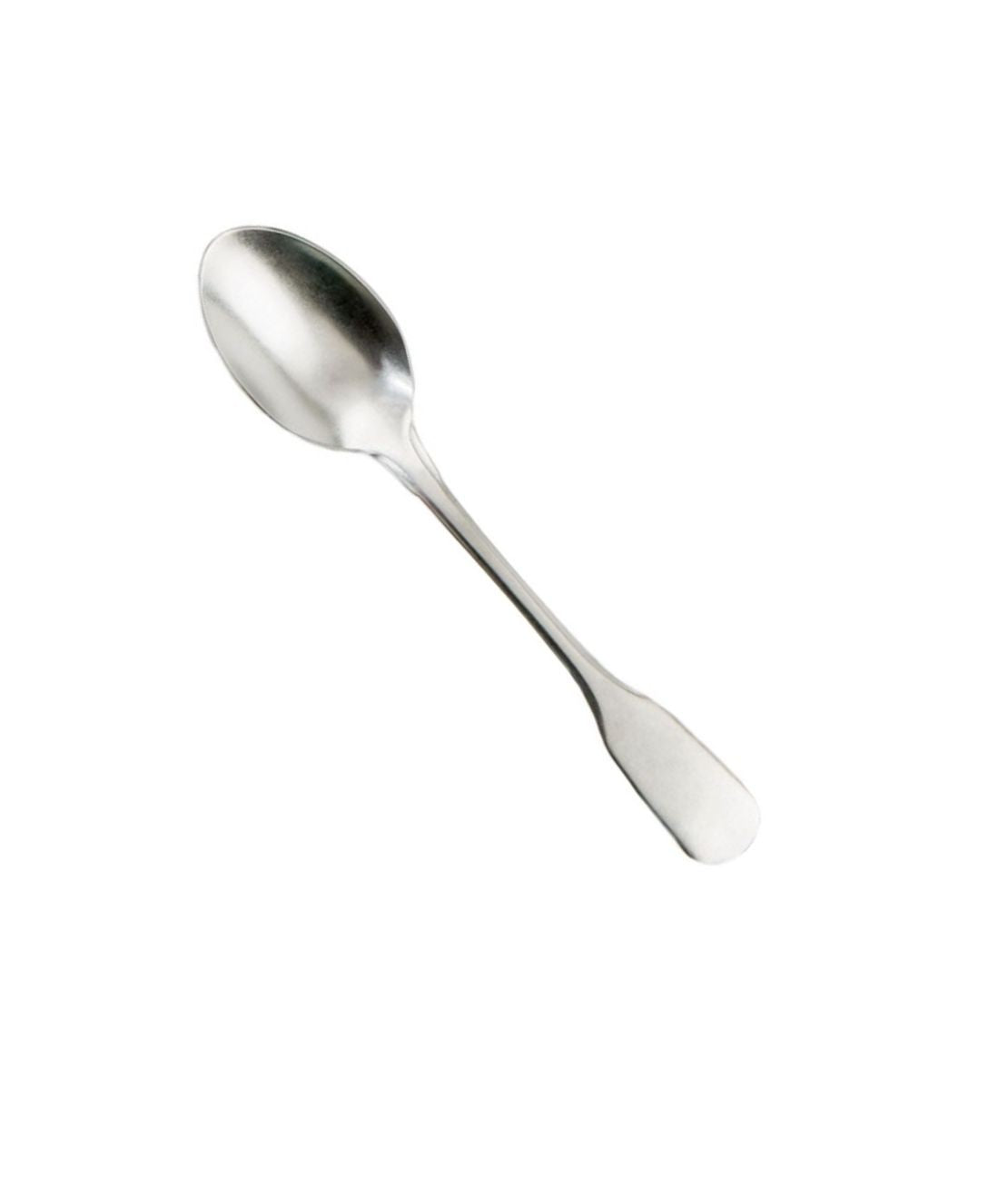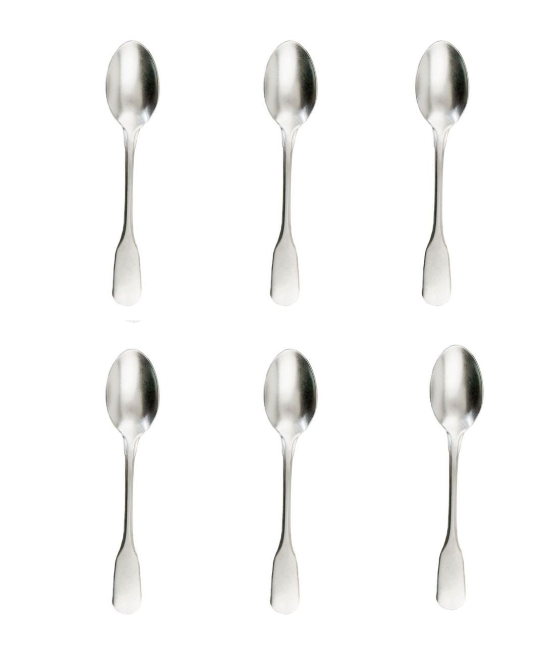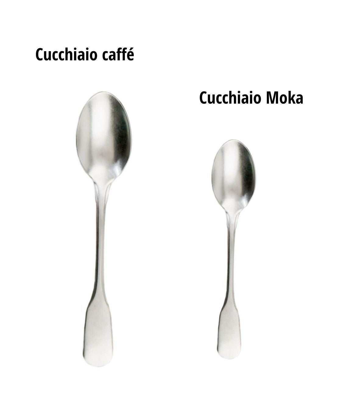 La sagomatura della parte finale dell'impugnatura rimanda ai classici servizi di posate d'argento. Il materiale è acciaio con finitura stone washed, adatte alla lavastoviglie.