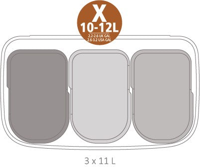 Disponibile nella versione con un solo scomparto da 36 litri e quella con due scomparti: uno da 11 litri e l'altro da 23 litri, per permettere di differenziare i rifiuti.