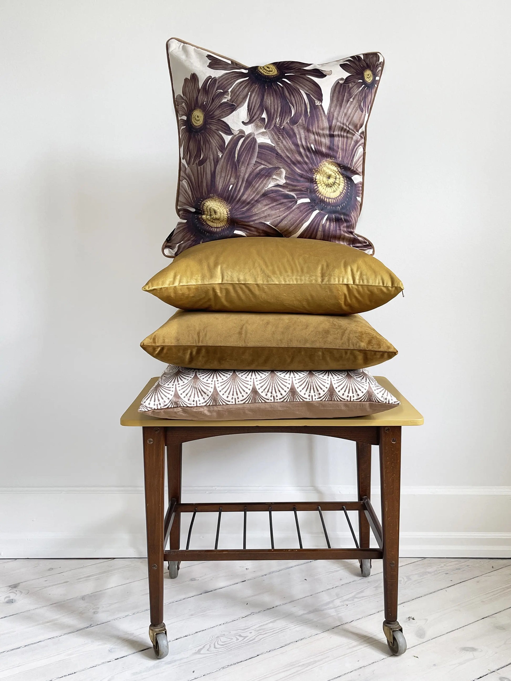 Per i suoi Velvet Cushions, Vanilla Fly sceglie la morbidezza del velluto e fantasie dai temi naturali - fiori, piante, animali - intervallati da alcune opzioni a tinta unita o con forme geometriche.