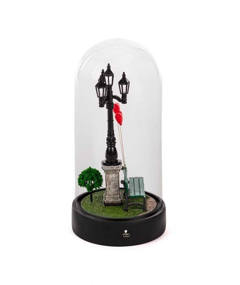 My Little Valentine di Seletti è una splendida idea regalo per San Valentino, originale e idilliaca. Questa lampada da tavolo è realizzata in resina e vetro: all'interno della cupola si presenta una magnifica e dettagliata miniatura, con una panchina, due palloncini a forma di cuore e l'immancabile lampione, presente in tutte le lampade My Littles, che è anche la fonte di luce della lampada. Accendila e vedrai la scena vivere, grazie alla batteria che dura fino a 60 ore. Una volta scarica, collegala alla corrente tramite il cavo USB incluso, e diffondi il romanticismo nella stanza.