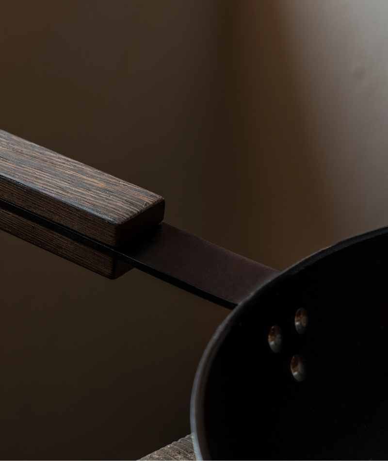 L'impugnatura in legno garantisce invece la massima sicurezza contro le scottature.