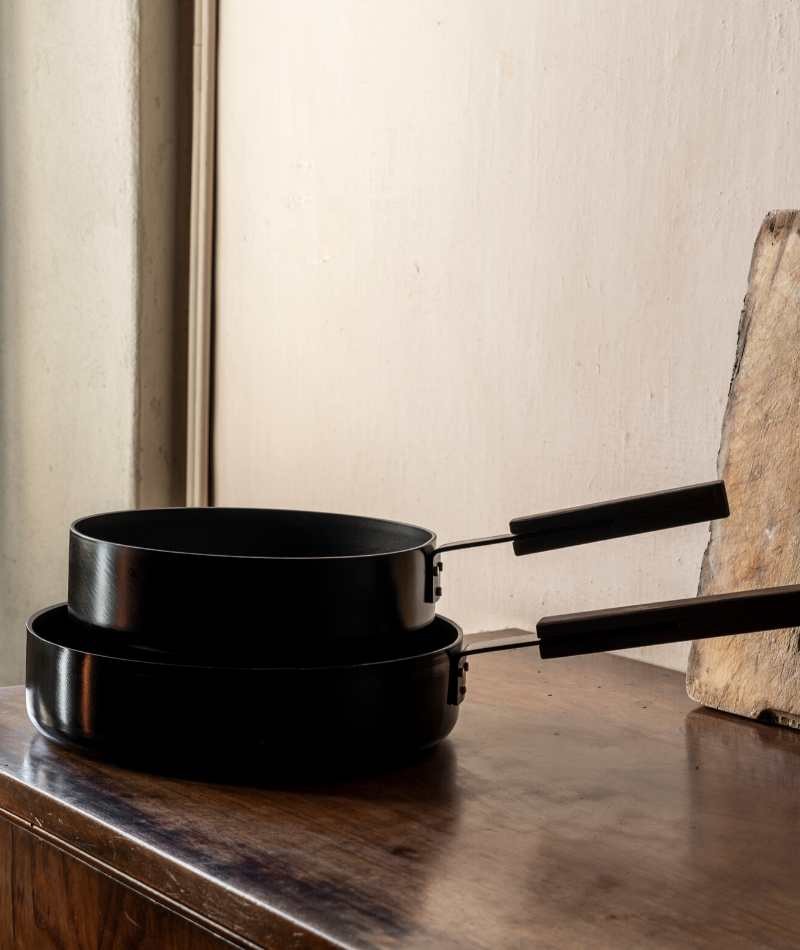 Black, è questo il suo nome, la dice lunga sulle nuances che la caratterizzano. La struttura in alluminio dei tegami è infatti completata da un rivestimento antiaderente totalmente nero.