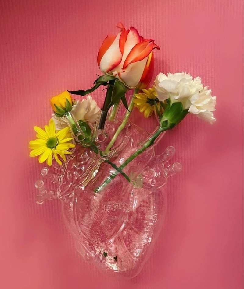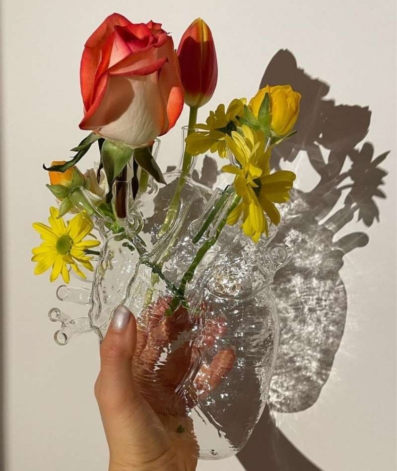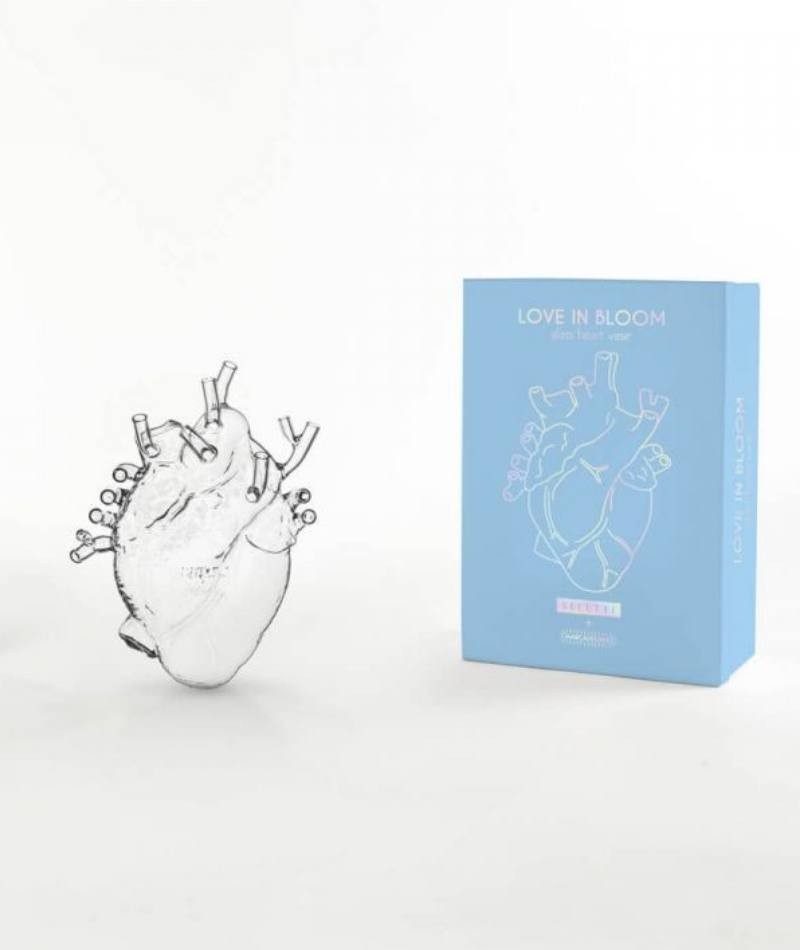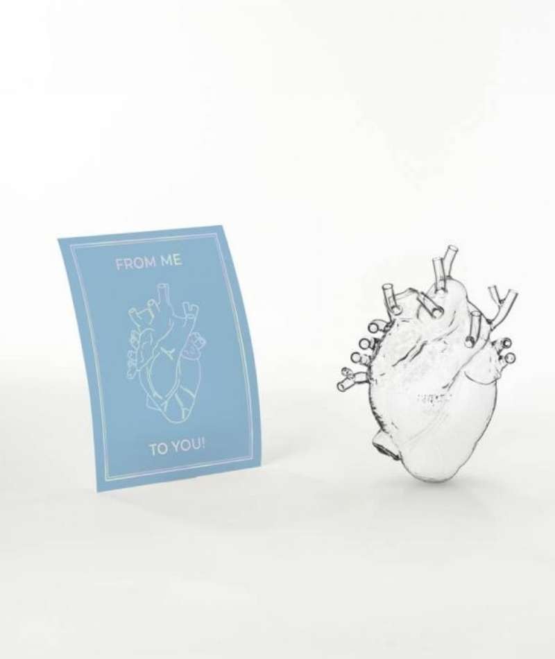 Heart of Glass Marcantonio riproduce un cuore umano in modo estremamente accurato, fedele a ogni dettaglio anatomico. Decide però di trasformarlo in un vaso da fiori. La trasparenza del vetro ci permette di ammirare il gioco degli steli all'interno del vaso.