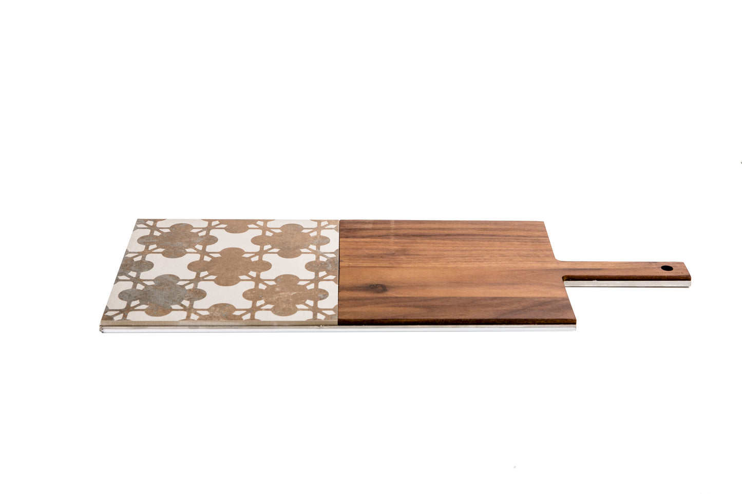 Metallo, ceramica e legno si combinano perfettamente creando dei centrotavola, taglieri e piatti da portata, oggetti raffinati e nello stesso tempo funzionali.