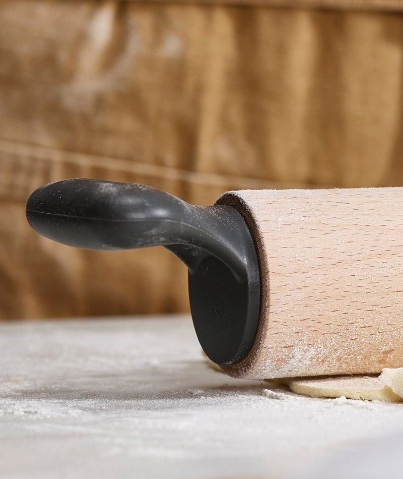 Il suo design ergonomico è studiato appositamente per non gravare sulle articolazioni del polso e della mano, evitando al contempo che le nocche colpiscano il piano di lavoro durante il rotolamento.
