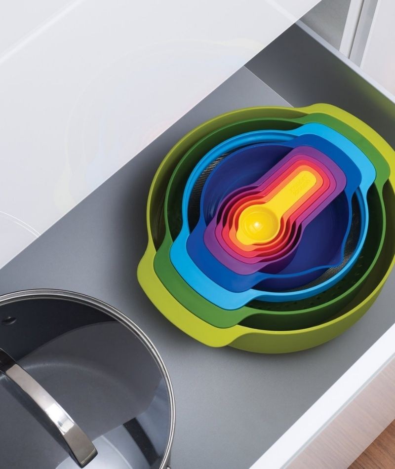 Nest™ 9 Plus è il nuovo set di ciotole realizzato da Morph per Joseph-Joseph, composto da una ciotola di miscelazione.