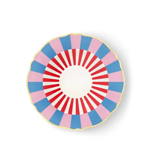 Piatto fondo in porcellana con decalco colorato e dettagli oro.