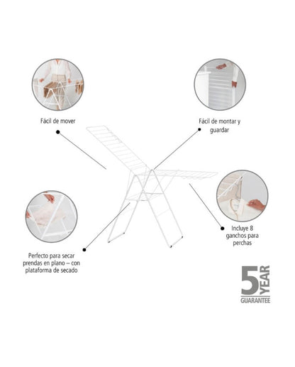 Dotato di una barra per appendere, è ideale per asciugare camicie, pantaloni e altri indumenti lunghi senza pieghe. Le sue ali regolabili permettono di gestire al meglio lo spazio di stenditura, rendendolo versatile per ogni tipo di esigenza. Realizzato con materiali di alta qualità e prodotto in Lettonia, garantisce durata e stabilità nel tempo.