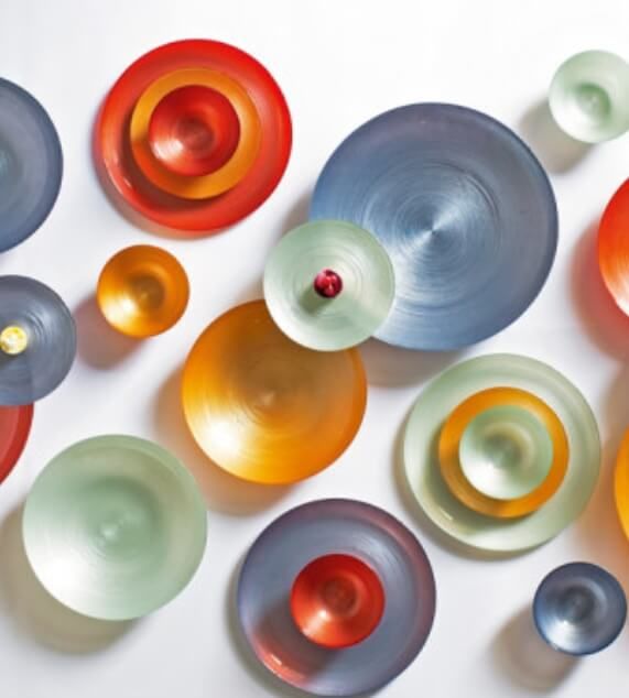 Vetro trasparente, successivamente trattato con coloranti organici.