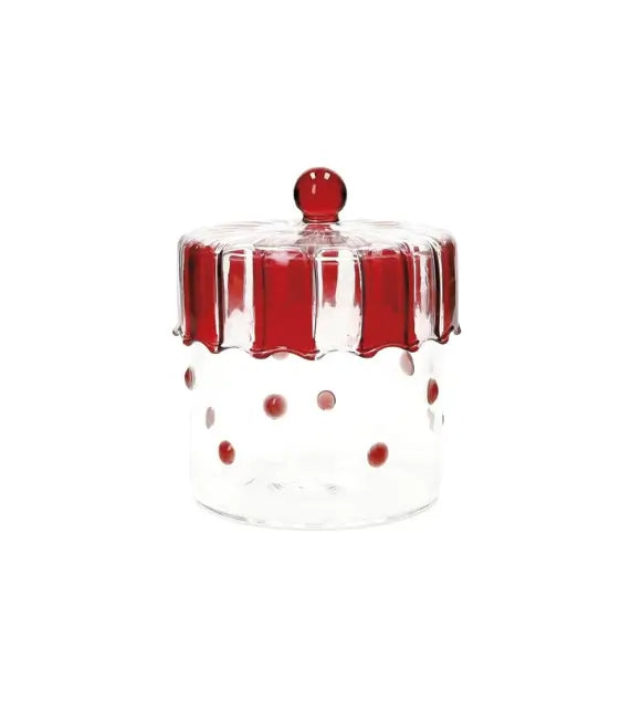 Il barattolo Pois rosso di Brandani, in vetro e con un coperchio dal design natalizio, è l’accessorio ideale per conservare alimenti o decorare la cucina durante le feste. Grazie al suo stile vivace e allegro, con i classici pois bianchi su fondo rosso, non passa inosservato e aggiunge una nota festosa. Perfetto per contenere biscotti, zucchero o altri ingredienti, questo barattolo è funzionale e decorativo.