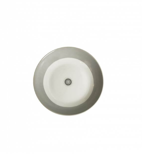 - Colore: bianco con bordo grigio, nero o tortora e decoro centrale