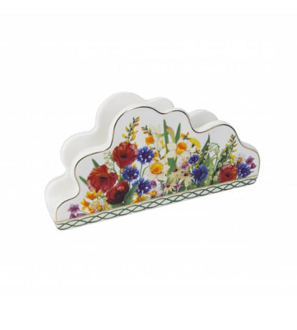 Portatovaglioli Fiori di Campo in Porcellana di Brandani: questo portatovaglioli combina funzionalità e design elegante, rendendolo perfetto per ogni occasione, dalle cene informali agli eventi speciali. Realizzato in porcellana di alta qualità, è resistente e durevole. Il design 'Fiori di Campo' presenta delicati motivi floreali e colori vivaci, che portano un tocco di natura e stile alla tua tavola.