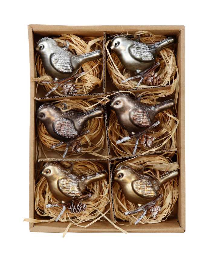 Uccellini in vetro dal fascino vintage, perfetti da appendere al tuo albero di Natale o per arricchire il tuo centrotavola.
