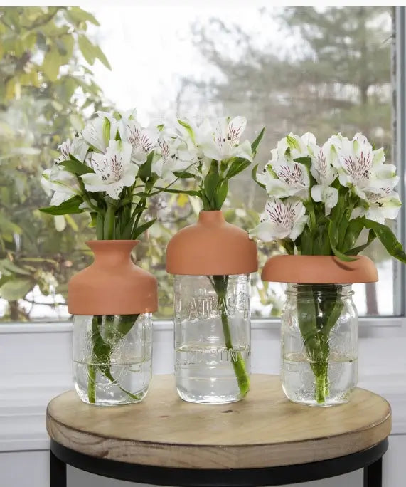 I Terracotta Vase Collars di Kikkerland sono l'ideale per dare un tocco di stile e funzionalità ai tuoi barattoli di vetro trasformandoli in vasi raffinati. Questo set comprende tre collari di terracotta, ciascuno con un’apertura diversa per regolare facilmente il numero di fiori da esporre. Perfetti per bouquet di diverse dimensioni, garantiscono sempre un look elegante e ordinato. Realizzati in terracotta naturale, aggiungono un tocco rustico e artigianale alla tua casa, rendendoli perfetti per decorazioni minimaliste o moderne.
