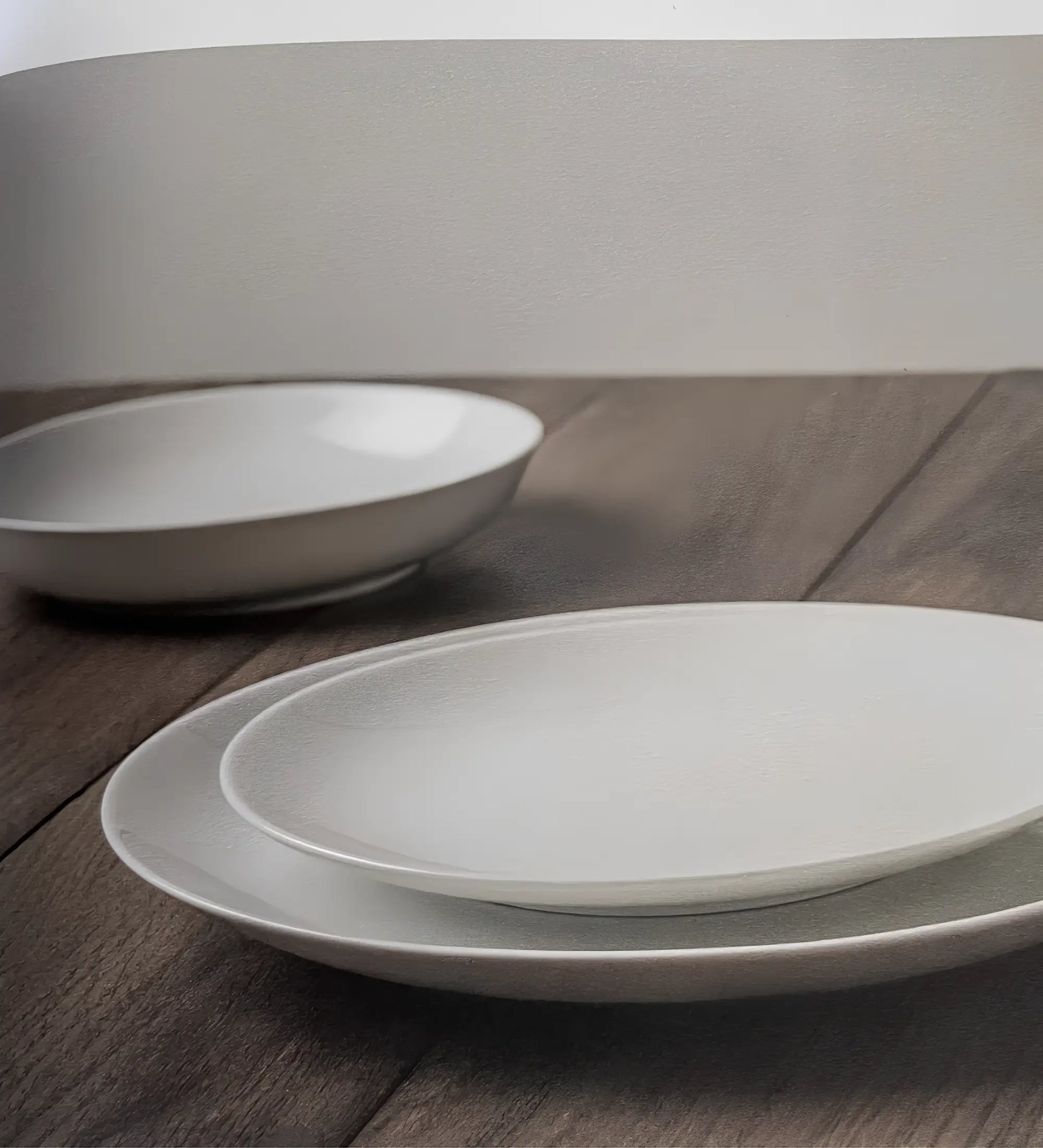 Realizzato in porcellana bianca, presenta una linea pulita e minimale, perfetta per chi desidera comporre una mise en place moderna, ordinata ma di grande impatto visivo.