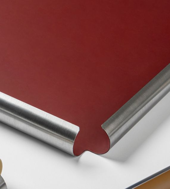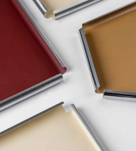 L’acciaio satinato della parte esterna contrasta splendidamente con la verniciatura colorata opaca e uniforme.