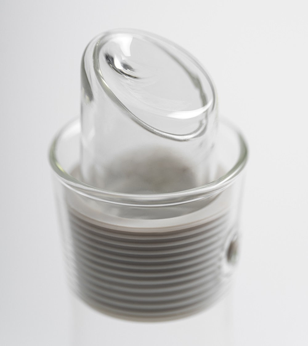 Scopri l’olio (e l’aceto) sotto una nuova luce con questa Oliera | Acetiera disegnata da Paolo Ulian per KnIndustrie. Realizzata in vetro borosilicato con un manico cavo che consente di ammirare il fluire del liquido, combina funzionalità e leggerezza estetica in un oggetto pensato per durare.