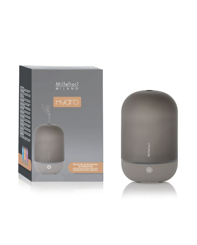 Un nuovo diffusore ad ultrasuoni della collezione Hydro di Millefiori: diffusore Rounded, design pulito e funzionale, con tecnologia ad ultrasuoni che consente una piacevole nebulizzazione profumata semplicemente diluendo alcune gocce delle essenze profumate Millefiori, solubili in acqua.