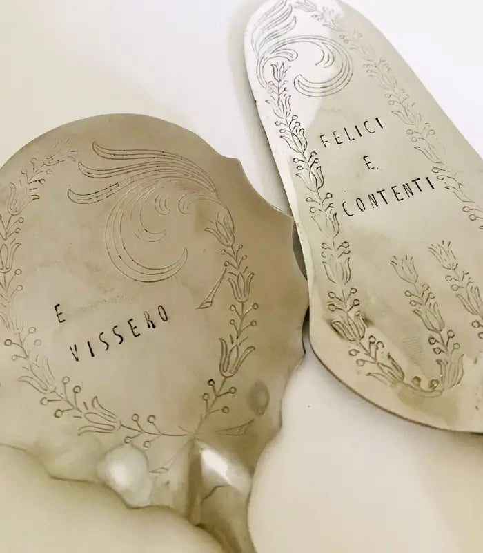 Set Posate da Torta Vintage Incise a Mano - "E vissero felici e contenti"