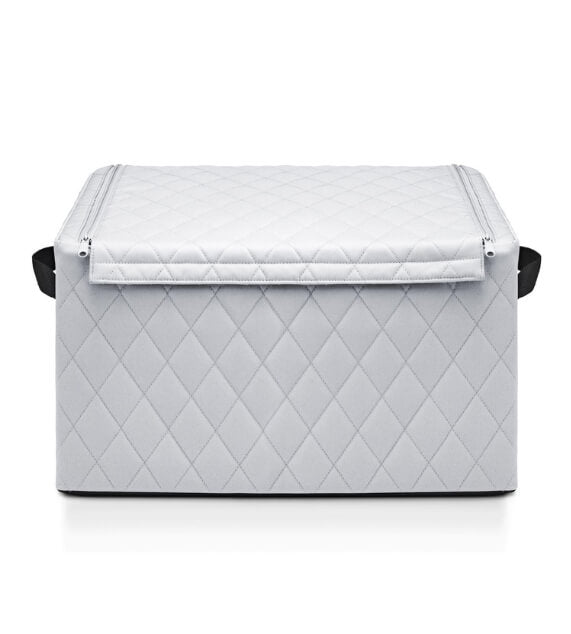 Storagebox L di Reisenthel - Rombi Light Grey: un'elegante e pratica soluzione per chi desidera unire organizzazione e stile. Questa scatola di stoccaggio, con il suo distintivo design a rombi in tonalità light grey, non è solo un accessorio funzionale, ma anche un complemento d’arredo che si integra perfettamente in qualsiasi ambiente della casa, dall'ufficio alla camera da letto, dalla cucina al soggiorno.