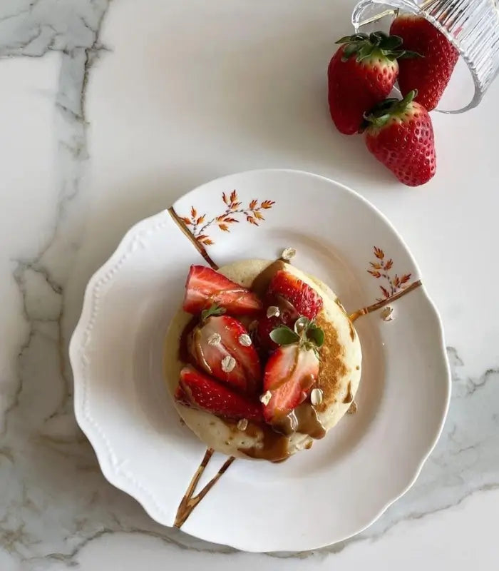 Ispirato all'antica tecnica giapponese di riparare ceramiche rotte con lacca mescolata a polvere d'oro, questo set celebra l'idea che le fratture non nascondono ma esaltano la storia di un oggetto. Ogni piatto presenta decorazioni in oro zecchino che simulano crepe preziose, trasformando quello che potrebbe sembrare un difetto in un elemento di straordinaria eleganza.